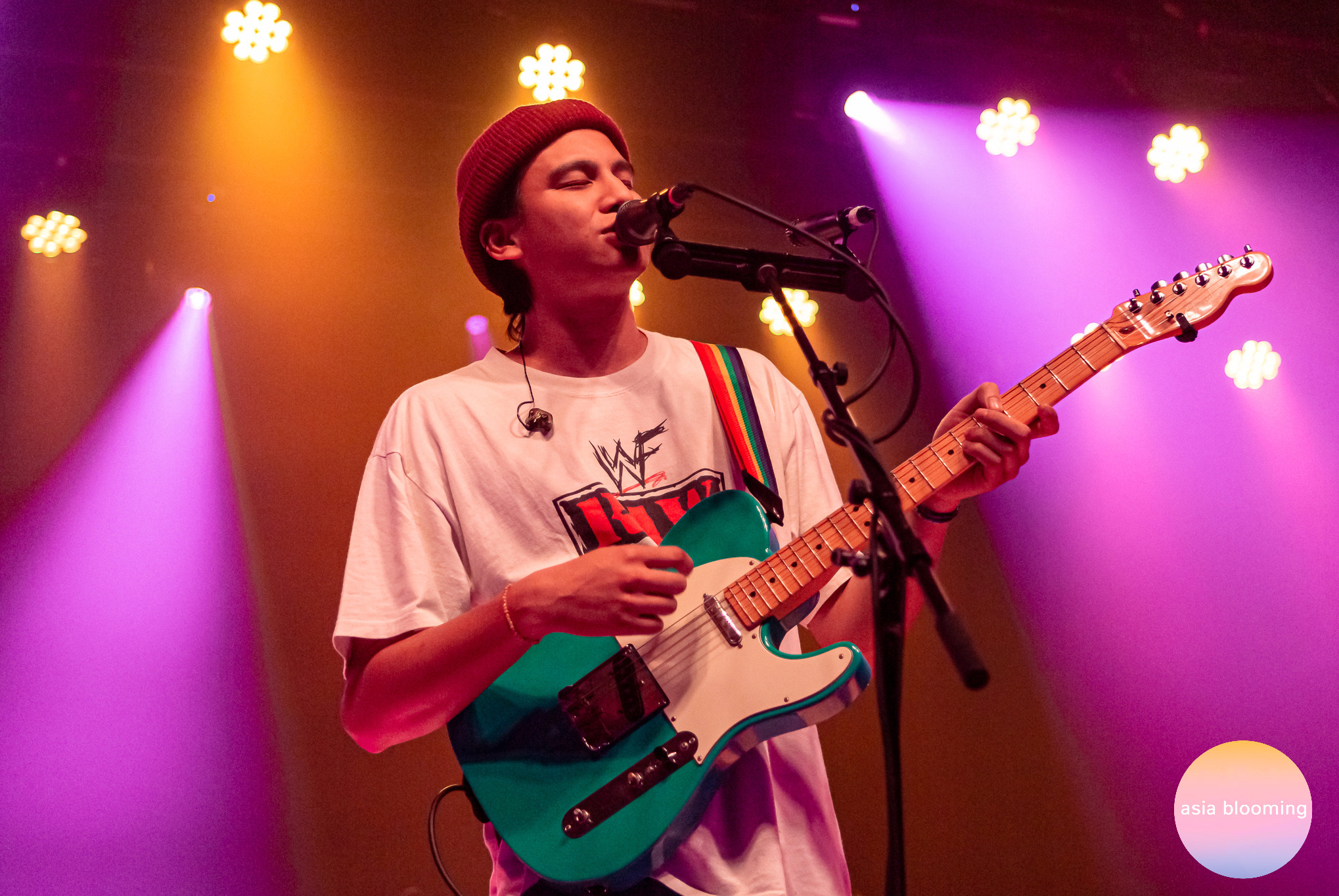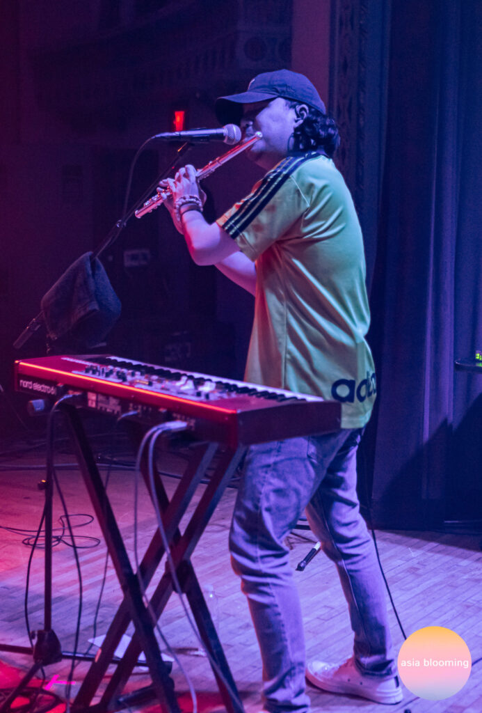 After a tussle of stage setup, Phum Viphurit took the stage, exuding a quiet, self-assured joy. When he was not singing, he would be strumming his guitar with the widest grin on his face while ambling around the stage to interact with his bandmates and the audience, and his cheeriness was infectious. He and his bandmates were dressed in t-shirts and loose pants (peep the iconic Thai elephant pants), and they all just seemed relaxed and happy to be there. The keyboardist, who also played the flute and tambourine, was particularly entertaining to watch for his silly little dance movements. The band settled into a comfortable, exuberant groove with “Adore” from Phum’s first album, Manchild. It’s an upbeat song that makes you want to clap along and bounce to the chorus. To the audience’s surprise and delight, Phum and the percussionist swapped instruments in “Lady Papaya,” a vocally sparse song with lots of hi-hat and a syncopated keyboard undercurrent.