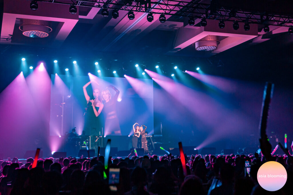 While Priscilla was the most well-known of the three singers that evening, the show was very much a collaborative effort designed to showcase all the performers equally. Priscilla’s songs had more of an “oldies” feel while Vincy and Angela brought a more modern, sentimental approach. Angela, who started her music career doing covers of Mandopop, Cantopop, and Western pop under the nickname “Little Vest,” also performed covers of American pop songs like Dua Lipa’s “Levitating” and Bruno Mars’ “When I Was Your Man.” Vincy and Angela’s sets alternated and intertwined in the first half of the show, even including a duet, “After Tomorrow (明天以後),” originally performed by Raymond Lam and Vincy Chan. Angela shared that she begged Vincy to include this song because she really enjoyed singing this at karaoke and that this was the first time it had been performed by two female singers. Meanwhile, Priscilla made a few cameos during the first half, performing several of her best-loved songs, in some cases as duets with Vincy and Angela.