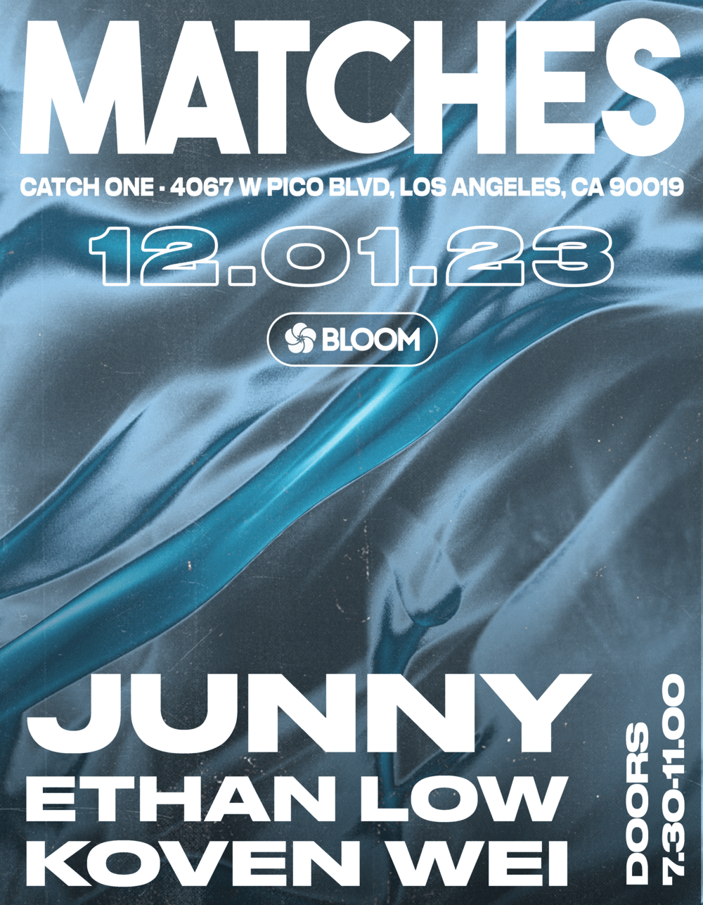 Canadian singer-songwriters JUNNY, Ethan Low, and Koven Wei are slated to perform on December 1 at Matches, a 1-day mini festival at Catch One, the Los Angeles equivalent of Broadway’s Studio 54.