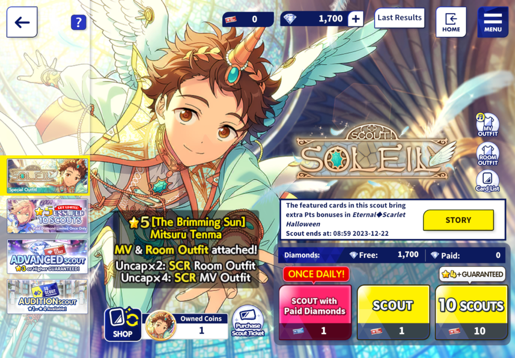 While the main story follows ALKALOID, there are about 14 other groups at ES, offering 40 to 50 other characters to get to know in this game. That means there is a lot of content to go through for a mostly free game. It’s a lot of boys, and you just can’t help but want to collect all the idol cards including their special versions during events. In addition, the game also has a section where you can obtain outfits and dress your favorite boy(s) up and even decorate their breakroom. As a producer, you have to make sure your boys are well rested and well dressed for anything!