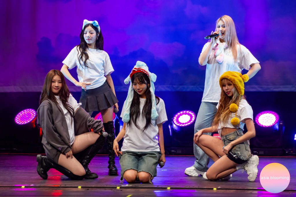 Considering the show’s proximity to Christmas, the Purple Kiss members called on the audience to turn their penlights to green and red in order to celebrate their acapella version of “My My.” Wrapping up the Q&A section, the five girls commanded the crowd to stand up, asking if they were thirsty: “Do you want some ‘Sweet Juice’?” Plories wildly screamed as they performed an English cover of the Cabin Fever album title track. Arguably, this was the best sounding live rendition as the vocal mixing matched their recorded release to a tee.