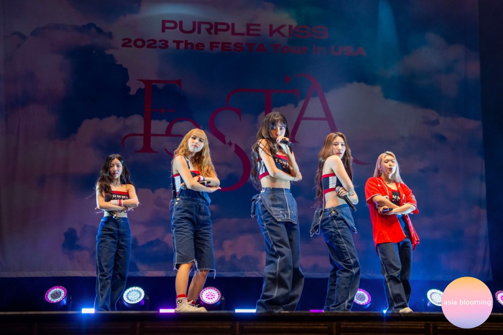 Vocal powerhouse K-pop group, Purple Kiss, ended their 17-city FESTA tour in Los Angeles on an explosive note. Not all members were in attendance, as Yuki was unable to make the final stop due to a scheduling conflict with another project group, EL7Z UP. But the other five members were able to fill in her absence and give fans, known as Plories, a festive night full of visuals, vocals, and vivacity. Plories lined up early in front of the theater to exchange fanmade goods and even took pictures with a cardboard cutout of Yuki before the show.