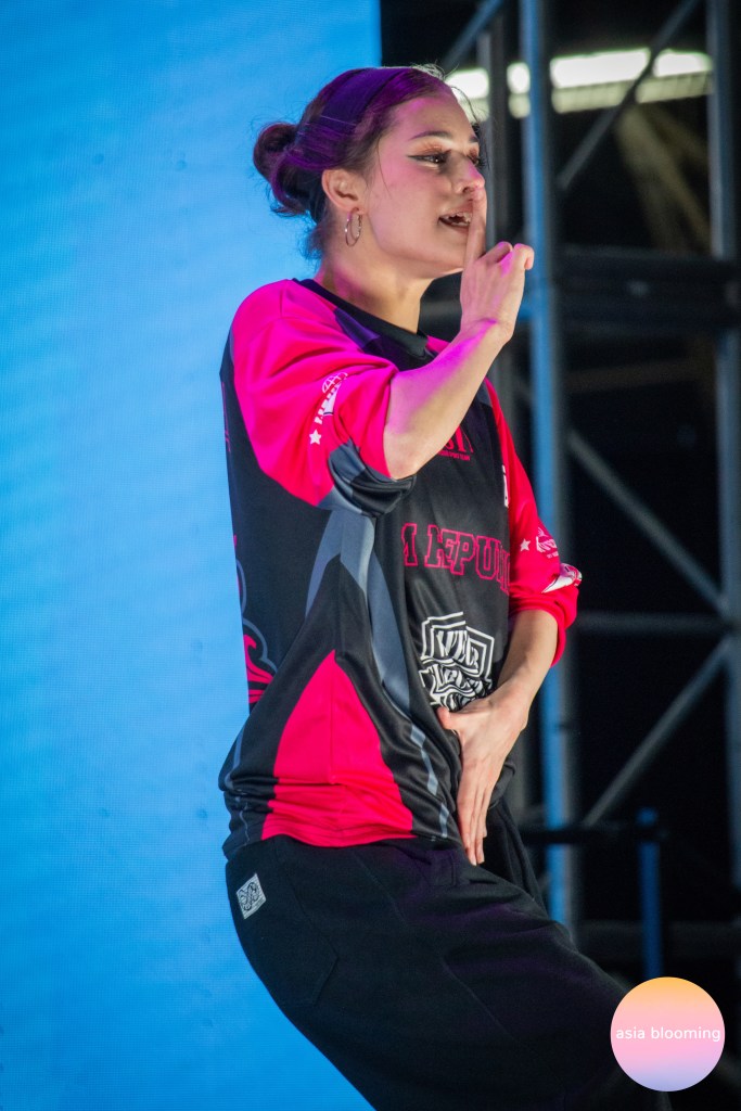 Thankfully, Audrey Lane’s events went much more smoothly than YUJU’s. The youngest Jam Republic member held two dance workshops — a beginner’s class on Saturday teaching her original choreography to JUNGKOOK’s “Seven,” and an intermediate class on Sunday teaching her crew’s choreography to LE SSERAFIM’s “Eve, Psyche & The Bluebeard’s Wife,” as seen on the competition show STREET WOMAN FIGHTER 2. Audrey broke down each piece, teaching the choreography in parts and checking in with students for any questions. Her sweet and funny personality truly shined through as she giggled and made jokes while throughout the workshop, finding some of the choreography silly while teaching. Towards the end, Audrey even went into the crowd to select a few dancers to dance with her, before performing together with the whole crowd once more. To finish off the workshop, Audrey got up close and personal with her students, kneeling on the ground to thank them and encourage them in their dance journeys.