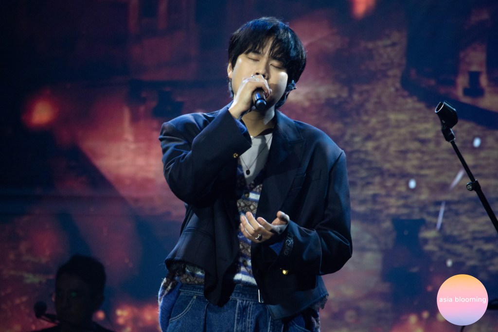 On his show on YouTube, Lee Mu Jin Service, the singer is usually making conversation full of awkward dad jokes and performing covers with guest artists. Creating an atmosphere like a live taping of an episode, Lee also prepared several covers throughout the evening and engaged in small talk and silly banter with the audience. After each OST he performed, he’d ask the audience if they’d seen the drama yet, taken by surprise when some were more popular than others. There were a lot of “ums” and awkward pauses, and in moments his dad jokes didn’t garner as many laughs as he’d hoped, he would simply apologize and move on, speaking faster and faster each time.