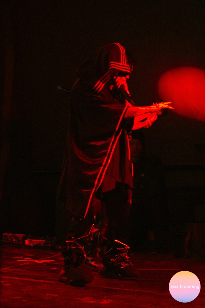 After smrtdeath’s 45-minute set began, it was finally time for Marz23 to take the stage, walking out in a black and white oversized poncho. Enveloped and obscured by the stage’s smoke effects, the singer made it clear from the get-go that his intent was to focus everyone’s attention on his music and lyrics. This was further emphasized with the heavy red and blue lighting throughout the night, making it difficult to take photos and videos and incidentally encouraging attendees to enjoy the moment instead.