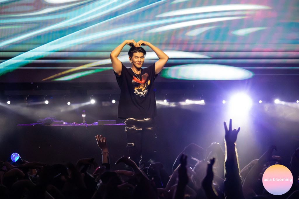 At just about 8 p.m., the lights dimmed and the music blasting on the speakers came to a halt, and the screen suddenly lit up with BM’s visage, introducing him to the stage. The already rowdy crowd raised their drinks in the air and screamed and cheered to BM making his way out, while casually grooving to his first track, “Lowkey.” Keeping things going at a steady pace with slower songs to start, he performed “Embers” and “Nectar,” two songs off the artist’s recent first EP, Element. The latter of the two songs featured warm pink and orange lights on the big screen as the stage lights turned low, casting a unique silhouette of BM performing his sensual choreography for fans. Taking a short pause from the music, the soloist made a quick introduction and welcomed everyone to his party.