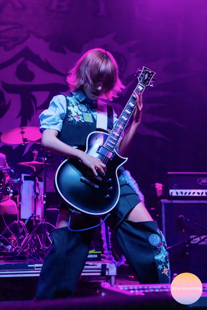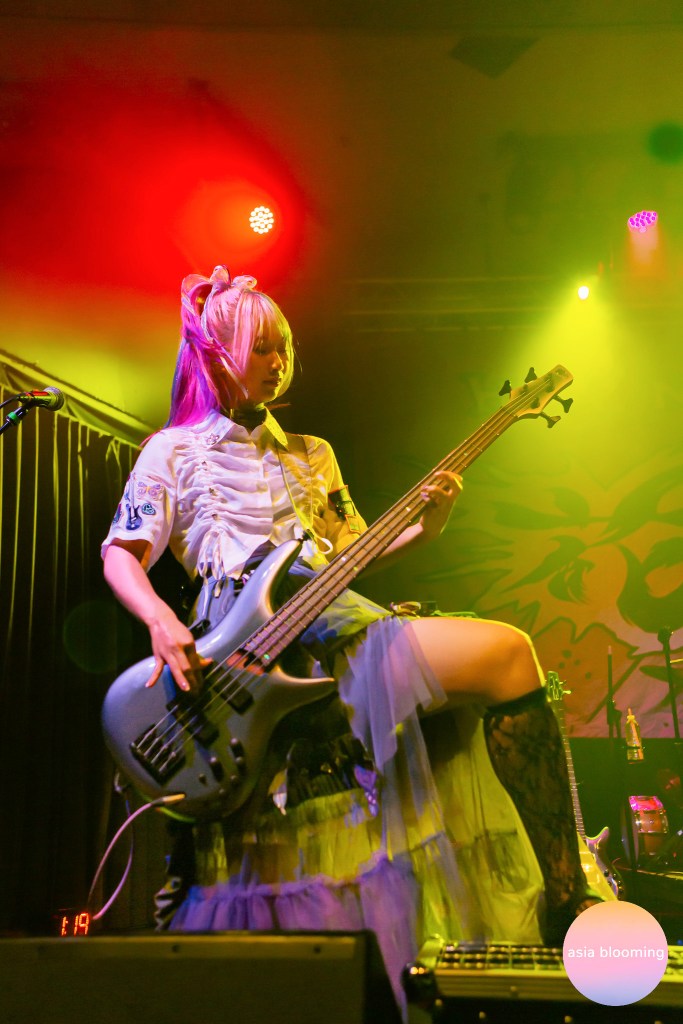 Complementing Yukina’s harsh vocals are Matsuri’s soaring, clean vocals, which provide a melodic reprise from the chant-based leadups and heavy breakdowns. (Perhaps because of the geometry of the space, Matsuri’s vocals sounded much clearer from the balcony compared to the floor.) The guitarist-vocalist has a magnetizing, quiet coolness onstage, effortlessly switching from headbanging guitarist mode to collected singer mode.
