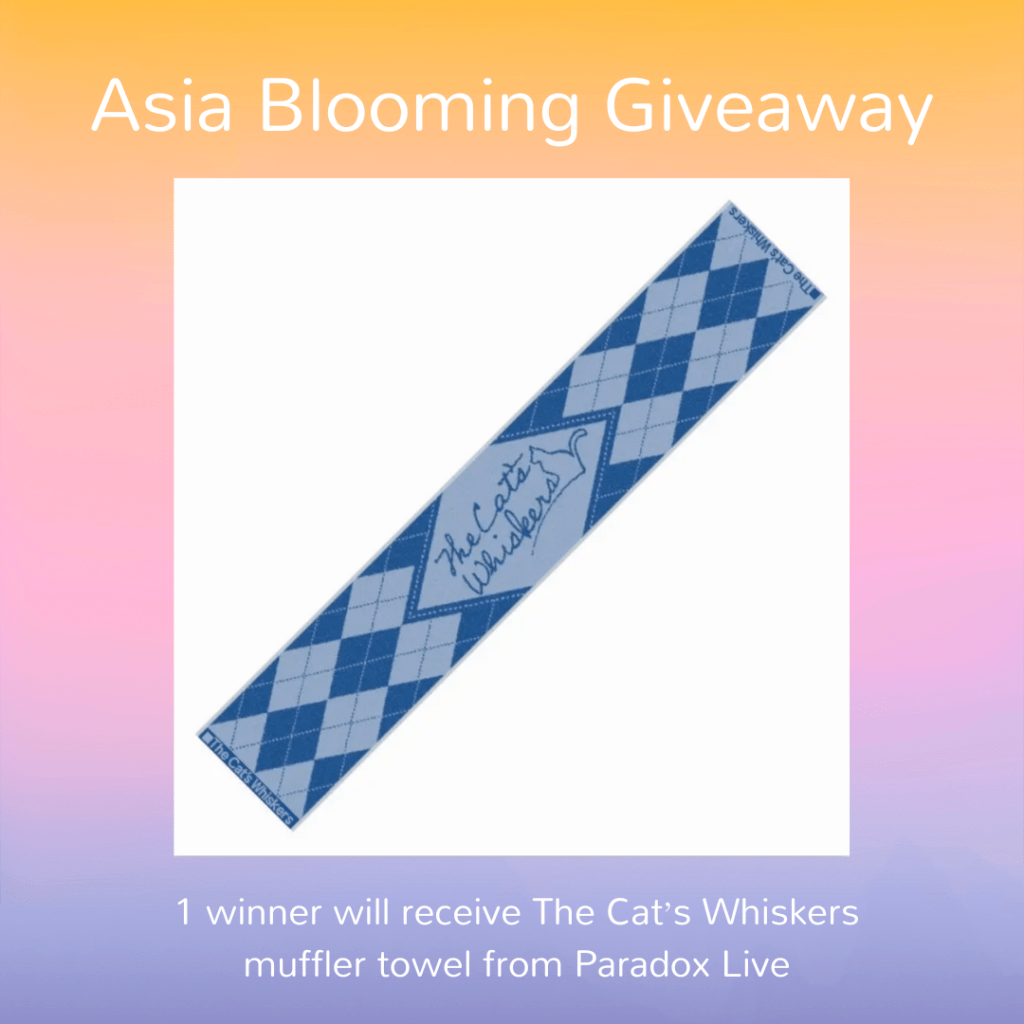 Asia Blooming is hosting a giveaway on Twitter and Instagram for one lucky winner to receive one The Cat’s Whiskers muffler towel! Entrants can enter the giveaway on either Twitter of Instagram. Enter on both Twitter and Instagram to increase your chances of winning!