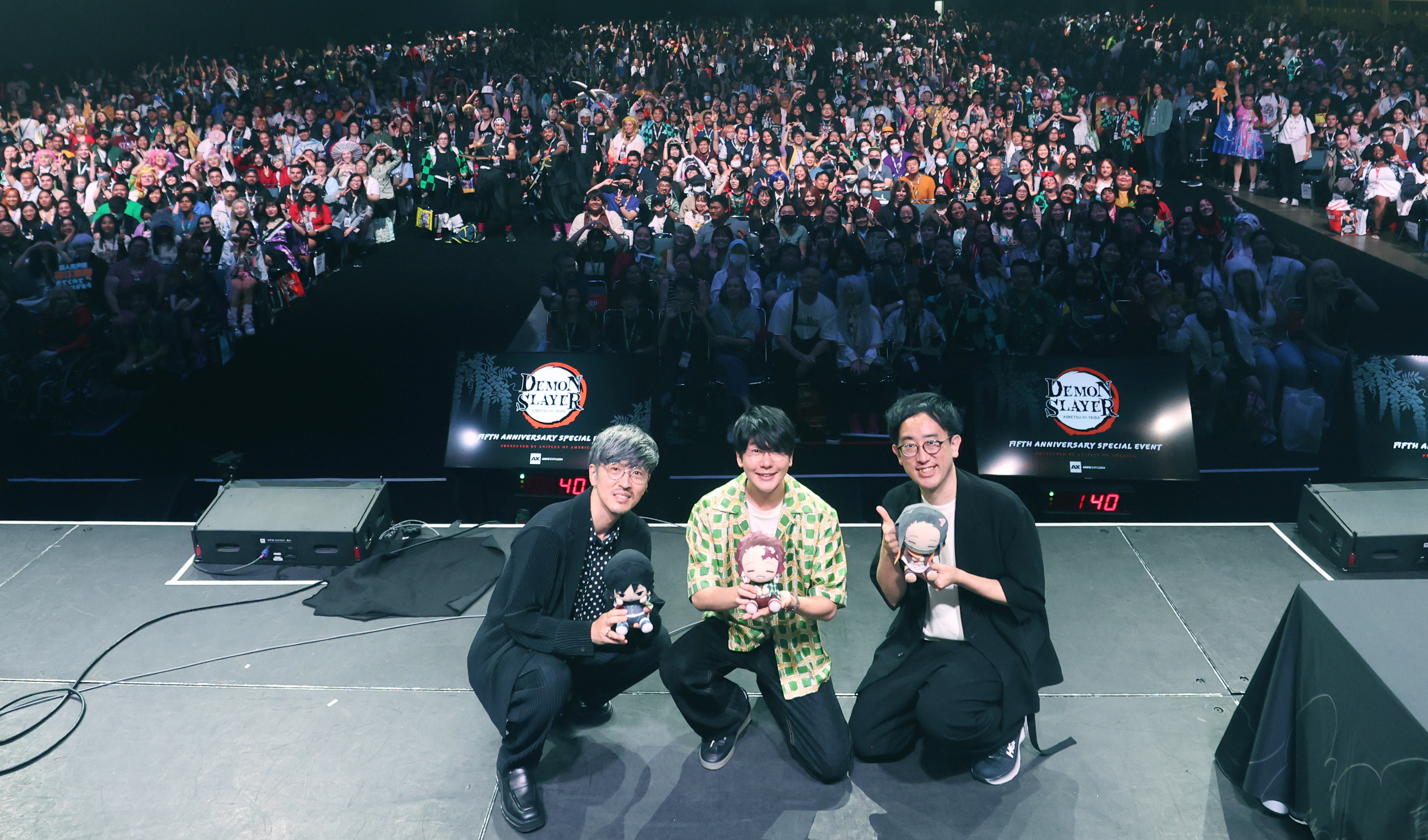 To celebrate the release of Demon Slayer’s latest season and the show’s fifth anniversary, Aniplex invited Demon Slayer stars Natsuki Hanae (voice of Tanjiro) and Takahiro Sakurai (voice of Giyu), along with the show’s producer, Yuma Takahashi, to this year’s Anime Expo. Taking a trip down memory lane, the two voice actors and producer discussed the beloved characters and their growth from season one until now.