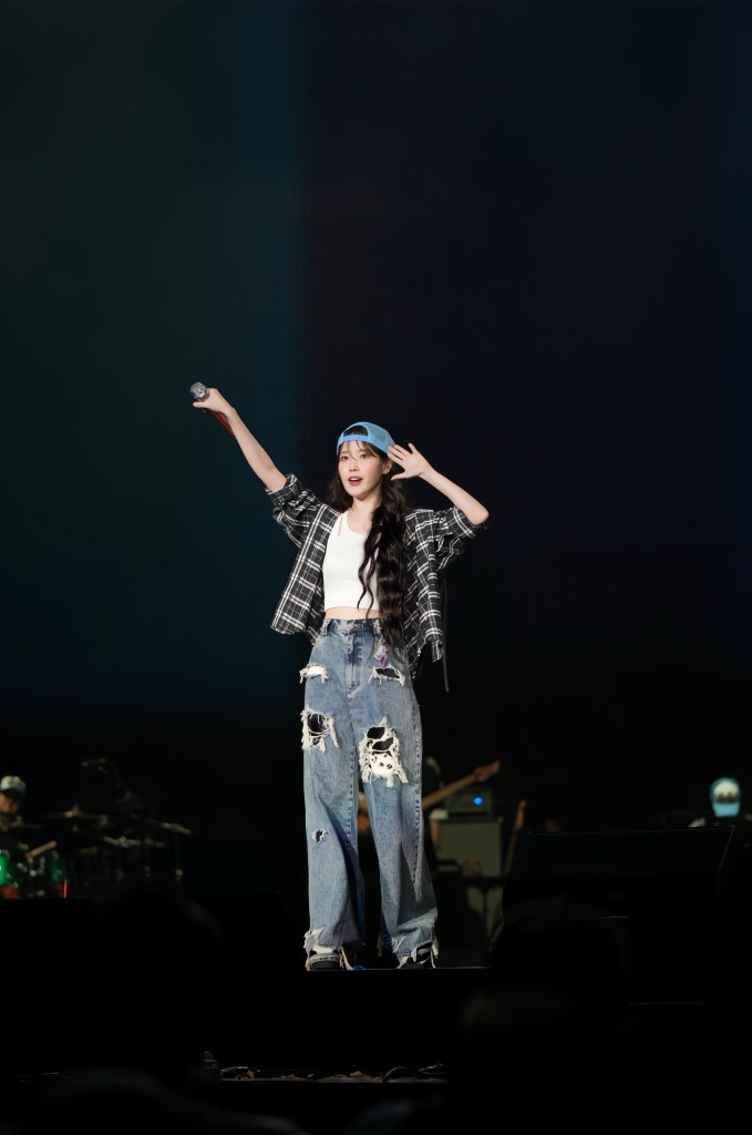 The calls of the crowd beckoned IU back to the stage for her ‘Heroic’ encore, which came back full circle with a reprise of “Holssi.” The real treat of the show was the second encore in which IU took song requests from the audience. Dressed down in a hoodie, baggy jeans and backwards cap, the singer proved her star power shone through her casual attire. Fans were ready with placards of song requests, and the vocalist happily obliged, singing a wide range of tracks like “Wallpaper Pattern,” a song she hasn’t sang in about 10 years, “Gloomy Clock,” and “Someday.” Fans were lucky enough to hear one of IU’s biggest hits from earlier in her career, the timeless classic “Good Day.” With a discography of over 15 years worth of music, IU and her band impressively performed seven songs off the cuff, showing that the star can enthrall listeners even without the elaborate stage production.