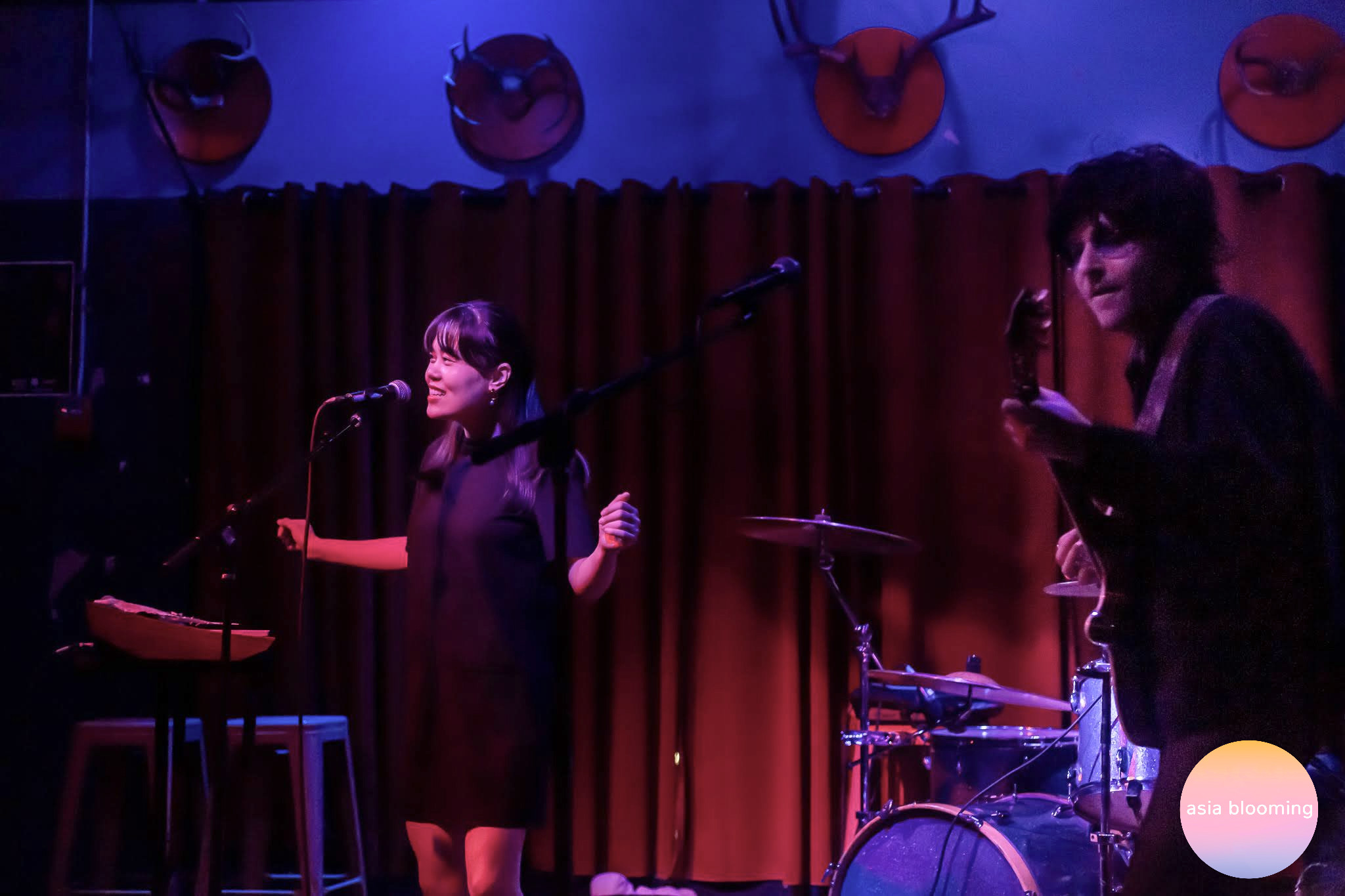 Chinese American Bear’s jovial show was the perfect antidote to a chilly Portland evening. Tucked into a small venue in St. Johns, the bilingual rock/indie duo, Anne Tong and Bryce Barsten, joined by U.S.-based drummer Rex Liu, shared laid-back, groovy tunes that celebrate the mixing of Chinese and American cultures. Tong comes from an immigrant family and moved around many cities in the U.S. as a kid, and she grew up seeing the cultural differences between her and her mostly white classmates. Her now-husband Barsten was also caught in the cross-cultural crosshairs when the couple were teenage sweethearts; their relationship had to be kept secret from Tong’s strict parents, and when they did find out, they were initially disappointed that Barsten didn’t meet the typical Asian mom criteria (i.e. be a doctor/lawyer/engineer, achieve straight A’s, be financially well-off, etc). But that didn’t stop their relationship from blossoming into not just a life partnership, but also a musical partnership.