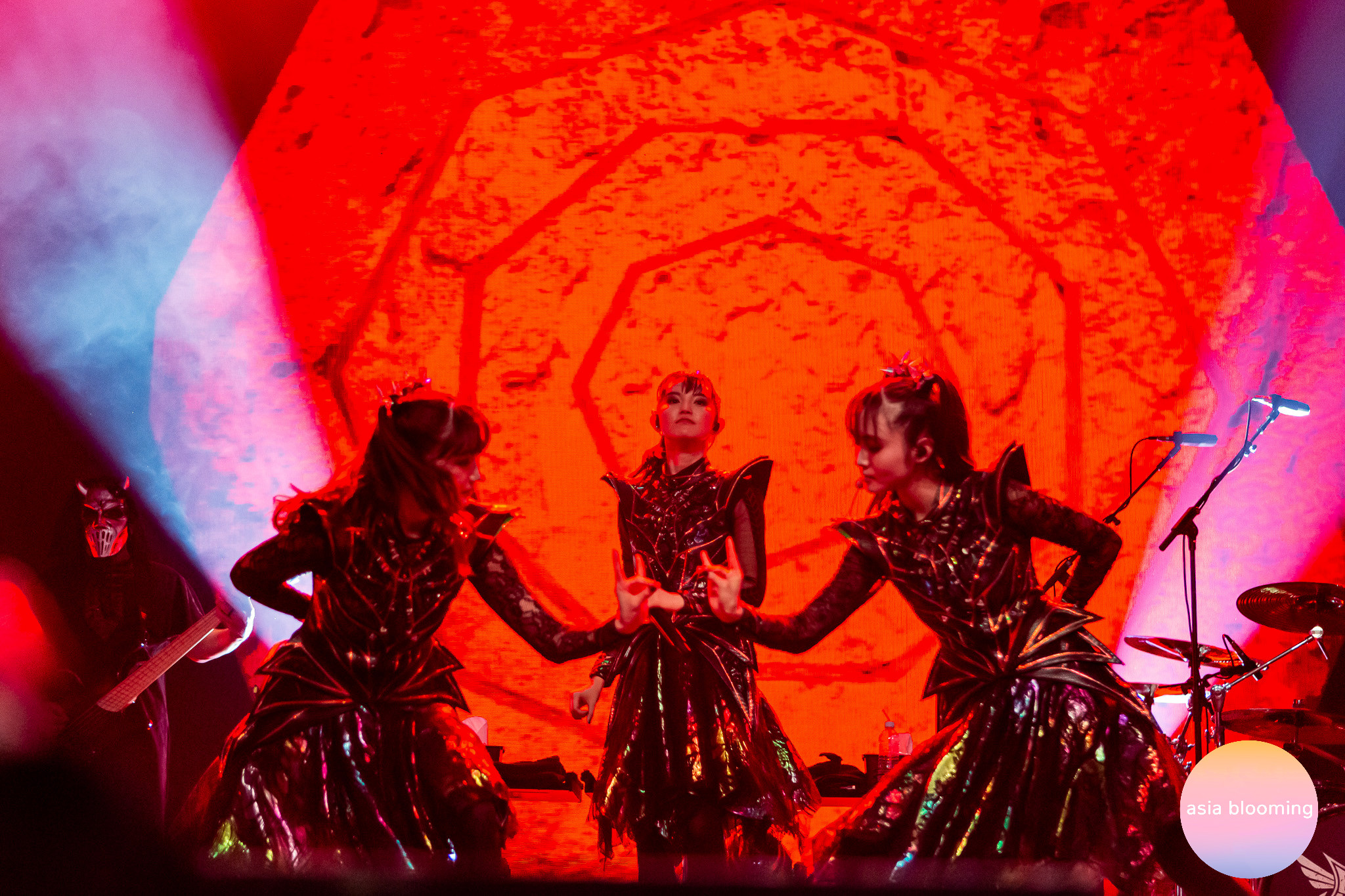 The girls’ dance moves were crisp and tightly synchronized, but some of the most enjoyable moments were when their “idol” veneer came off momentarily, like when Moametal and Momometal made eye contact with each other and shared mischievous looks, or when they all broke into huge grins after seeing something funny backstage, all while flawlessly executing choreography. This youthful, slightly impish energy created a special type of allure when combined with the intensity of metal.
