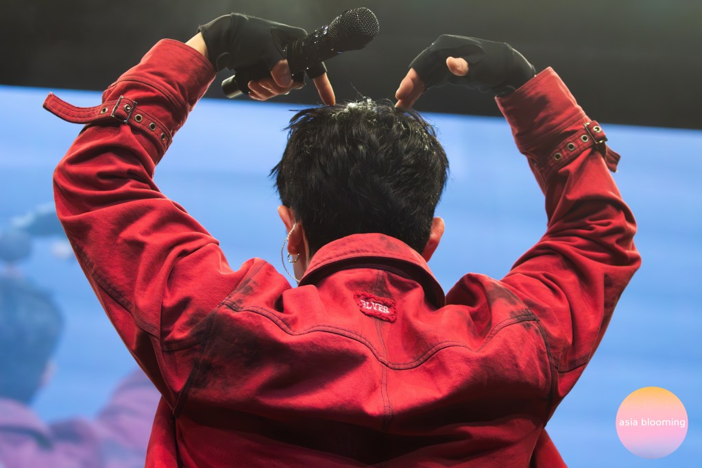 The show began at 8pm on the dot with a sensual performance of “Open Mind.” Confidently strutting onstage in red pants and a matching red jacket — with no shirt underneath — Wonho launched straight into the music and body rolls. Continuing the momentum with the catchy, upbeat songs, he performed “Ain’t About You, and he took a moment to introduce himself to his passionate crowd of fans. After his self introduction, it was time to introduce one more thing — his latest single, “What Would You Do.” After an energetic performance of the song, the singer headed straight into one of the most highly anticipated performances of the night — the dance challenge medley. Known for his fit physique, Wonho shook his hips, pumped his chest, and gyrated across the stage dancing to popular songs like aespa’s Karina’s “Up,” Taemin’s “Guilty,” VIVIZ’s “Maniac,” KISS OF LIFE’s “Sticky,” JENNIE’s “Mantra,” and more, much to his fans’ delight.
