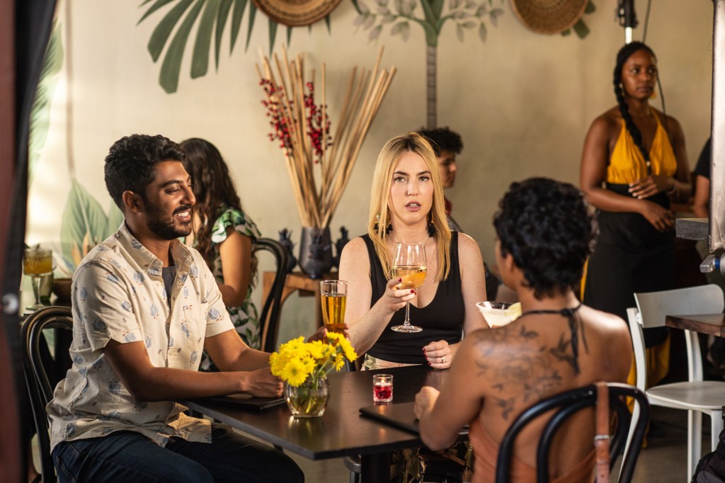 For Rajan, the movie can best be described in one word: spicy. “As an Indian person, you know, when I think of the word spicy, I don’t think of just heat. I think of layering of flavors, and I think that’s what this movie does on the surface. The threesome sort of brings you in. It excites you. It makes you sweat. It gets you excited, and it gets the endorphins going. But then as the movie starts playing, you realize, oh, wow, there’s a lot of nuanced ingredients in this story that reflect that authenticity [Dan and Selina wanted].” Dagerman added, “This movie is about relationships, and I think watching it [can push you to] have a new conversation you’ve never had about yourself and your relationship dynamic.”