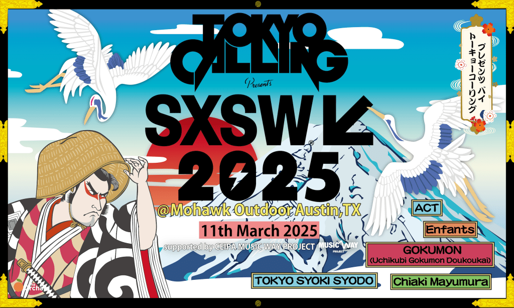 Returning for 2025, TOKYO CALLING is a live house circuit festival held in Tokyo since 2016. The showcase originally expanded to SXSW in 2023, and features a electric mix of punk rock bands, such as ACT, Enfants, GOKUMON (Uchikubi Gokumon Doukaukai), TOKYO SYOKI SYODO, and Chiaki Mayumura. Presented in partnership with CEIPA, TOKYO CALLING will be held at the Mohawk Outside alongside another Japanese artist showcase, INSPIRED BY TOKYO.