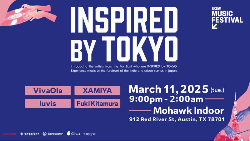 INSPIRED BY TOKYO is a live event aimed at introducing the upcoming generation of artists from Japan and Asia under the theme TOKYO. Presented by four Japanese music companies, FRIENDSHIP., Spincoaster, The Orchard Japan, and TuneCore Japan, the 2025 stage will be co-hosted with TOKYO CALLING with INSPIRED BY TOKYO taking place in the Indoor stage and TOKYO CALLING located at the Outdoor stage.
